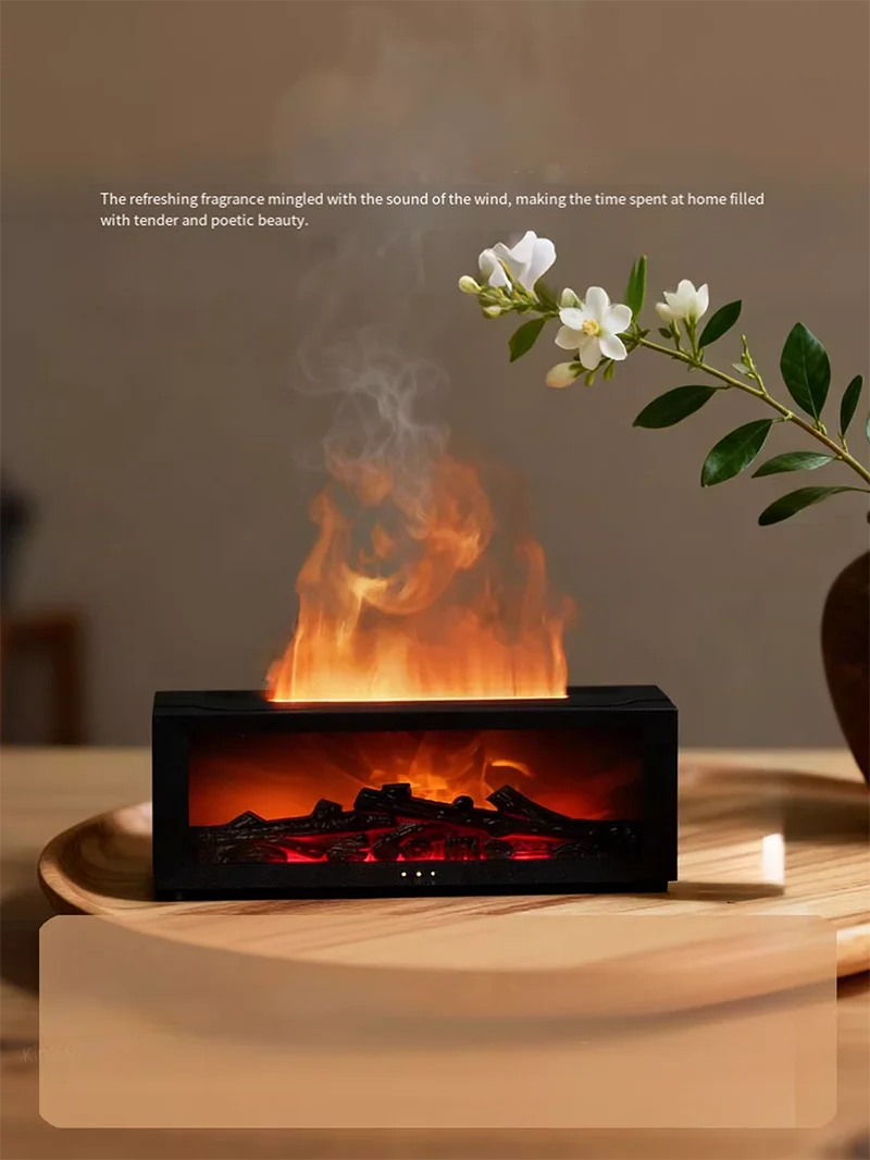 1. FLAME HUMIDIFIER:The flame aroma diffuser integrate with a built-in smart LED light that collects light and mist to create a realistic flame effect, adding a relax,soothe,calm atmosphere to your home,office,shop or more.