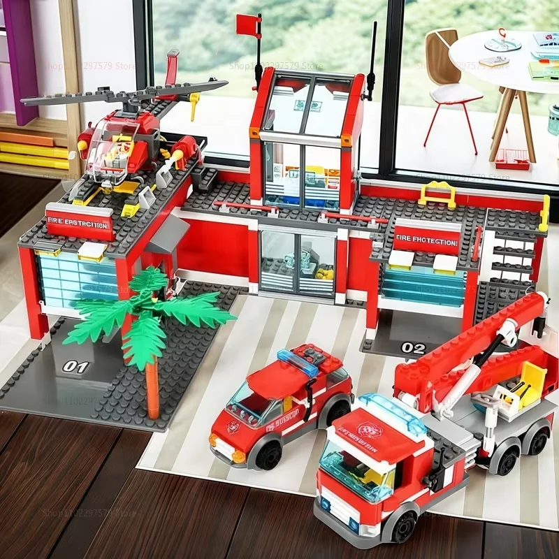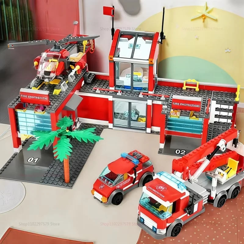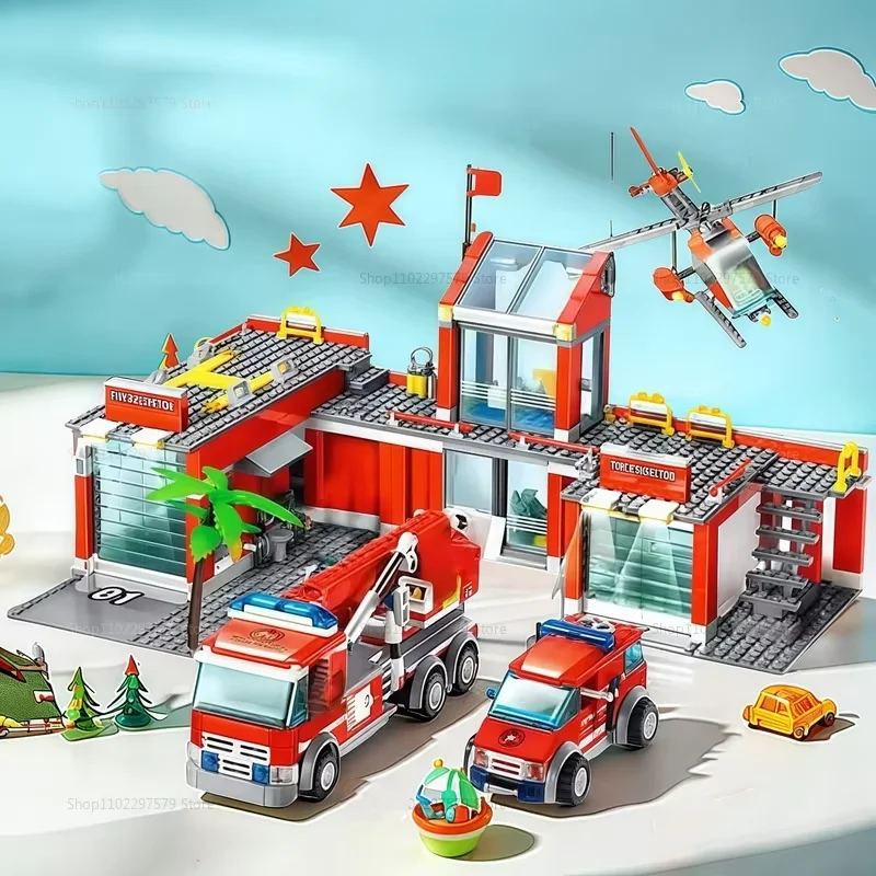 - City Fire Station Building Set: This fire station toy set includes a two-story fire station and garage, fire engine, fire rescue helicopter and more. Children can use this set of fire rescue toys to role-play, protect the city, and become the hero of the city.